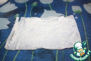 Намазываем сливочным сыром. На каждую палочку уходит чайная ложка сыра с горкой.