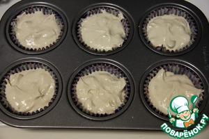 Разливаем полученную смесь в формы для мафинов. Получается 12 маффинов.