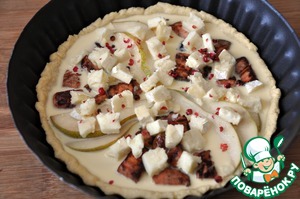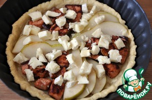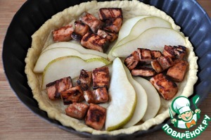 Кладём лосось-гриль и нарезанные груши на слегка остывшую основу. -