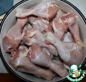 Берем куриные голени. Если Вы на диете, то очистите из от шкуры.