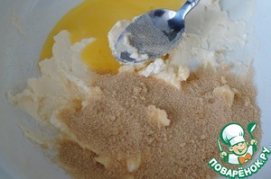 Смешиваем вместе желтки, мягкое сливочное масло и сахар. Хорошо растираем.