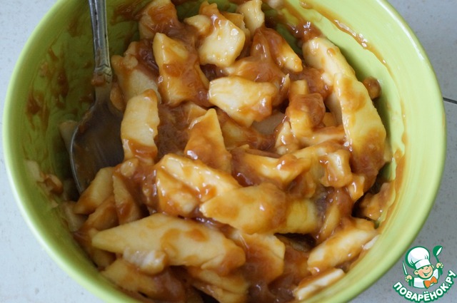 Яблоки нарежем небольшими ломтиками и слегка посыпаем сахаром. Пусть немного постоят и дадут сок.