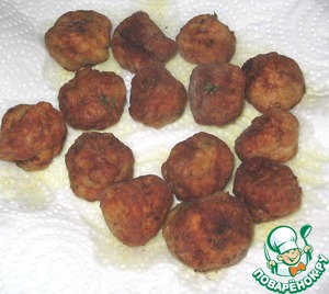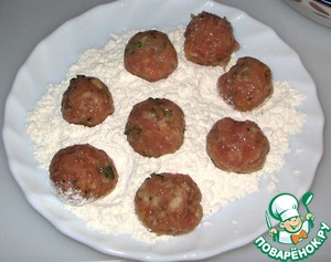 Мокрыми руками сформовать маленькие шарики (размером немного больше нута) и запанировать в муке.