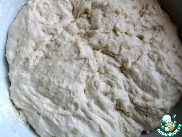 Растопить сливочное масло и влить в тесто. Тщательно вымесить его, добавив остальную муку. При необходимости добавить еще муки. Поставить в теплое место. Тесту дать подойти и промесить. Дать подойти еще раз.