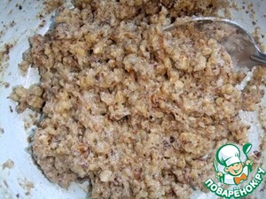 Взбитые белки смешать с измельченными орехами. Первая начинка готова.