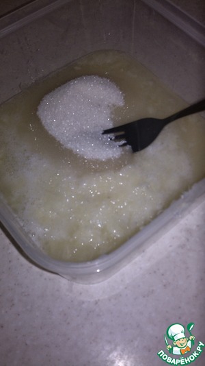 Добавляем сахар и перемешиваем. Все! наша начинка номер один готова.