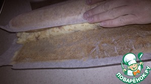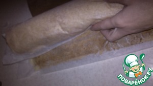 Рулет получается скрученным в пергаменте, на котором он выпекался.
