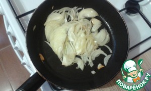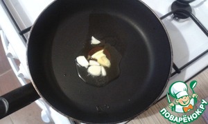На горячую сковороду наливаем растительное масло, кладем кусочек сливочного масла, и слегка обжариваем чеснок. Сливочное масло я предпочитаю топленое, так как оно придает более яркий вкус и помогает раскрыться вкусу продуктов.