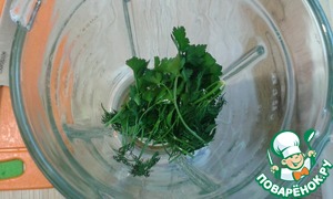 Зелень укропа и петрушки заливаем растительным маслом и взбиваем блендером.