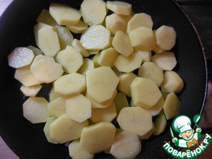 Картошку почистить, нарезать кружочками и жарить на сковороде с добавлением подсолнечного масла.