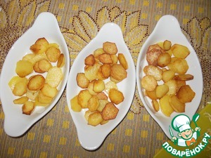 Далее выкладываем в порционные тарелочки нашу картошечку.
