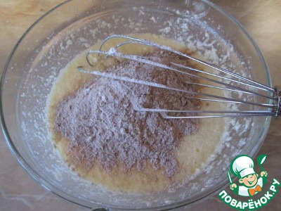 В миску просеять муку, какао и разрыхлитель