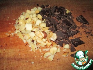 Часть орехов и большую часть шоколада порубить ножом