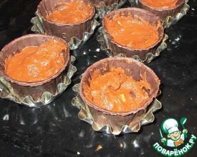 Разложить тесто по бумажным формочкам. Такое тесто удобнее раскладывать ложкой для мороженного, но увы, у меня ее нет, поэтому воспользовалась обычной ))) В одну формочку приблизительно по 1,5 ст. л.