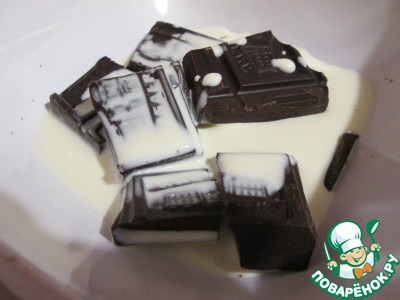 Оставшийся шоколад смешать со сливками и подогреть в микро 30 секунд ( у меня мощность 800)