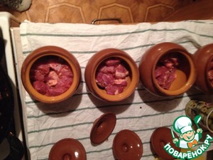 А все остальное это уже надобно называть не мясом в горшочках, а по другому, с учетом соленых огурцов, похоже на селянку.