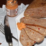 - Бекон (варено-копченый с большой мясной прослойкой) — 100 г