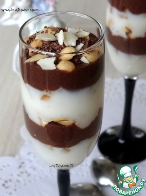 Рецепт «Шоколадно-ванильный десерт с орешками и абрикосом»: