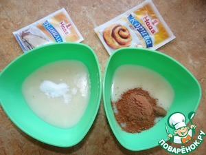 В миску просеять муку и сахар, добавить молоко, размешать до однородности;