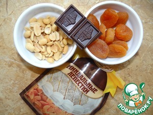 Абрикос порезать на кусочки, шоколад натереть на терке; -