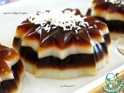 Желе от HAAS очень быстро застывает, даже в горячем виде, поэтому перед последующей заливкой, готовое ванильное или кофейное желе растопить на маленьком огне при помешивании;