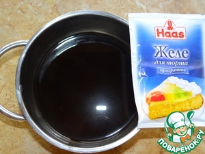 Приготовить кофейное желе: заварить кофе, добавить сахар, желе - при помешивании довести до кипения, прокипятить 15 секунд;