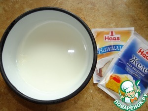 Приготовить ванильное желе: в молоко добавить сахар, ванилин, желе - при помешивании довести до кипения, прокипятить 15 секунд;