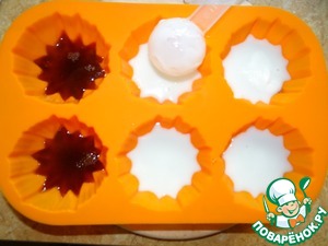 В формы залить по 1ст. л. ванильного желе - убрать в холодильник на 10 минут;
