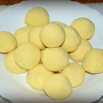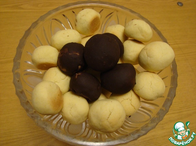 5) Катаем маленькие шарики, примерно 3 см. в диаметре. Выпекаем при 180*С 15-20 мин. Это рисовое печенье не зарумяниться, оно так и будет беленьким-бледненьким, поэтому не передержите.