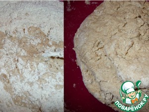 Мягкое тесто выложить на слегка подпыленную мукой доску и вымесить тесто, слегка припыляя мукой руки.