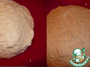 Тесто округлить, выложить в смазанную растительным маслом миску (1), накрыть и оставить в тепле на 1.5 – 2 часа для подъема (2).