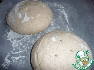 Подошедшее тесто подмесить и сложить конвертом. Готовое тесто выложить на подпыленные мукой формочки, накрыть пленкой и оставить для подъема. Если нет формочек, тесто выложить на пекарскую бумагу, подпыленную мукой и сформировать хлеб желаемой формы.