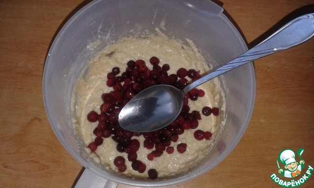 В конце положить клюкву, перемешать
