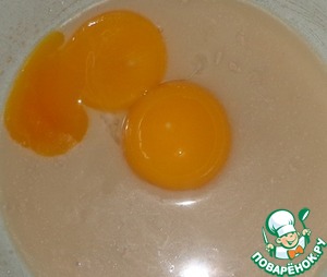 Желтки отделяем от белков. Желтки добавляем в тесто. Перемешиваем.