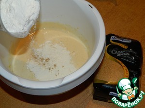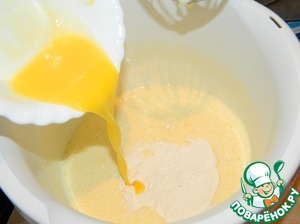 Яйца взбиваем с сахаром (Мистраль). Добавляем муку и соду.