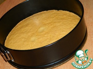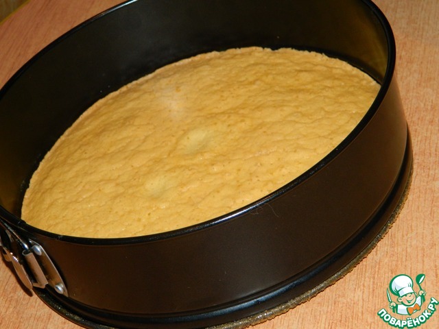 Здесь удобнее будет взять для боков пирога форму немного меньшего диаметра, т к бисквит немного уменьшается в диаметре при остывании..