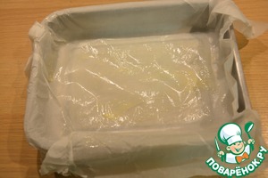 Форму для кекса (20X28см) застелить пергаментной бумагой и слегка смазать маслом. Духовку разогреть до 175С.
