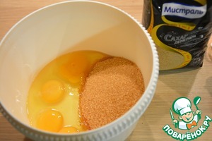 Взбить яйца и сахар до пышной массы.