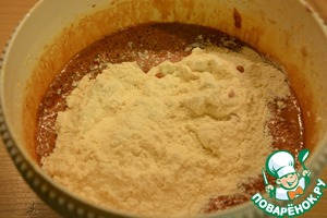 Всыпать просеянную муку с разрыхлителем и солью. Взбить миксером до однородности.
