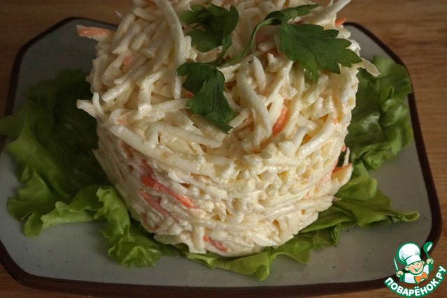 Этот легкий, воздушный салат прийдется по вкусу многим любителям сельдерея. Честно говоря, я очень удивилась, что среди такого множества сельдерейных салатов этого простого рецепта на сайте нет. Я готовлю этот салат уже бесчисленное множество лет, а с появлением постного майонеза салат стал неизменно присутствовать у меня на постном праздничном столе. Посвящается всем любителям сельдерея.
