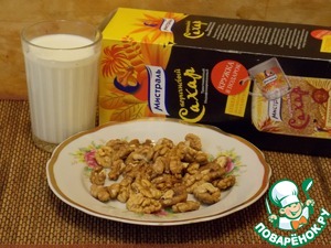 Орехи и сахар измельчить как можно мельче. Лучше всего в пыль, правда с грецкими это получается с трудом.