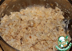 В полученную массу добавить отваренный рис и еще раз перемешать.