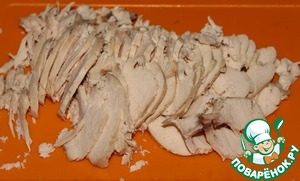 Натертые сыр и яблоко и нарезанную куриную грудку смешать вместе.