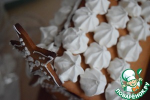 Теперь на крышу выкладываем безешки, не забывая наклеивать тем же сахарным раствором.