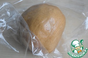 Замесить тесто в шар. Завернуть в пищевую плёнку и поставить в холодильник на 2 часа.