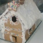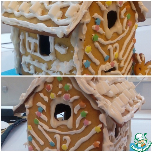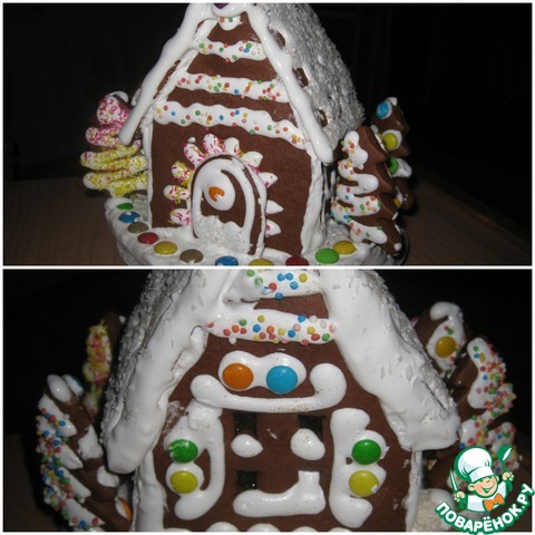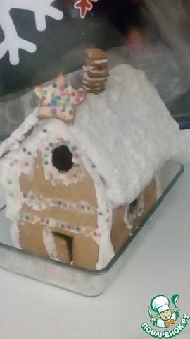 Домик, конечно, больше для украшения, но все же съедобный. Из остатков теста сделали прянички, вполне вкусные, только твердоватые получились, возможно потому, что долго пекли.