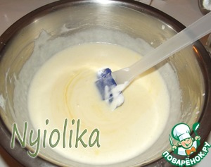 Смешать растопленное сливочное масло, сметану, сахар, соль, добавить соду, погашенную уксусом или разведенной лимонной кислотой, тщательно перемешать до полного растворения сахара и соли. Вмешать 1 яйцо.