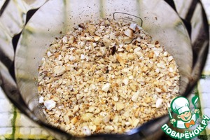 Половину порции обжаренных орехов поместила в чашу блендера.