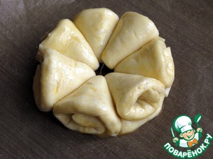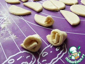 Каждую половинку круга скатываем в розочку, как на фото.
