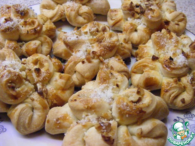 Рецепт «Сахарно-ореховые слоёные розы»: